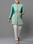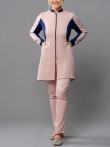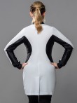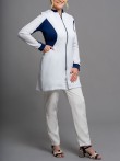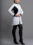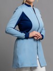 O jaleco Luna possui modelagem acinturada e slim, elegante e moderna. Indicado para profissionais que procuram conforto e que necessitam de liberdade de movimentos durante os atendimentos. Partes do jaleco, em áreas estratégicas, são confeccionados em malha de poliamida (aquela malha leve e geladinha). A composição com cores mais escuras, além do recorte arredondado em lua na região da cintura, trás a impressão de cintura mais fina. As mangas são longas com punho na mesma malha utilizada nas outras regiões. A gola padre e o fechamento completo com zíper, fazem deste modelo um dos mais indicados quando a preocupação é biosegurança. Fechamento em zíper de nylon.