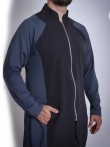 Jaleco de modelagem slim (mais justo ao corpo), elegante e moderno. Mangas modelo reglan. As mangas, laterais e costas do jaleco são confeccionados em malha tecnológica de poliamida (tecido de toque gelado) a mesma utilizada em uniformes de atletas, com características antiodor e com muita elasticidade para garantir grande mobilidade e liberdade de movimentos. Fechamento em zíper metálico.