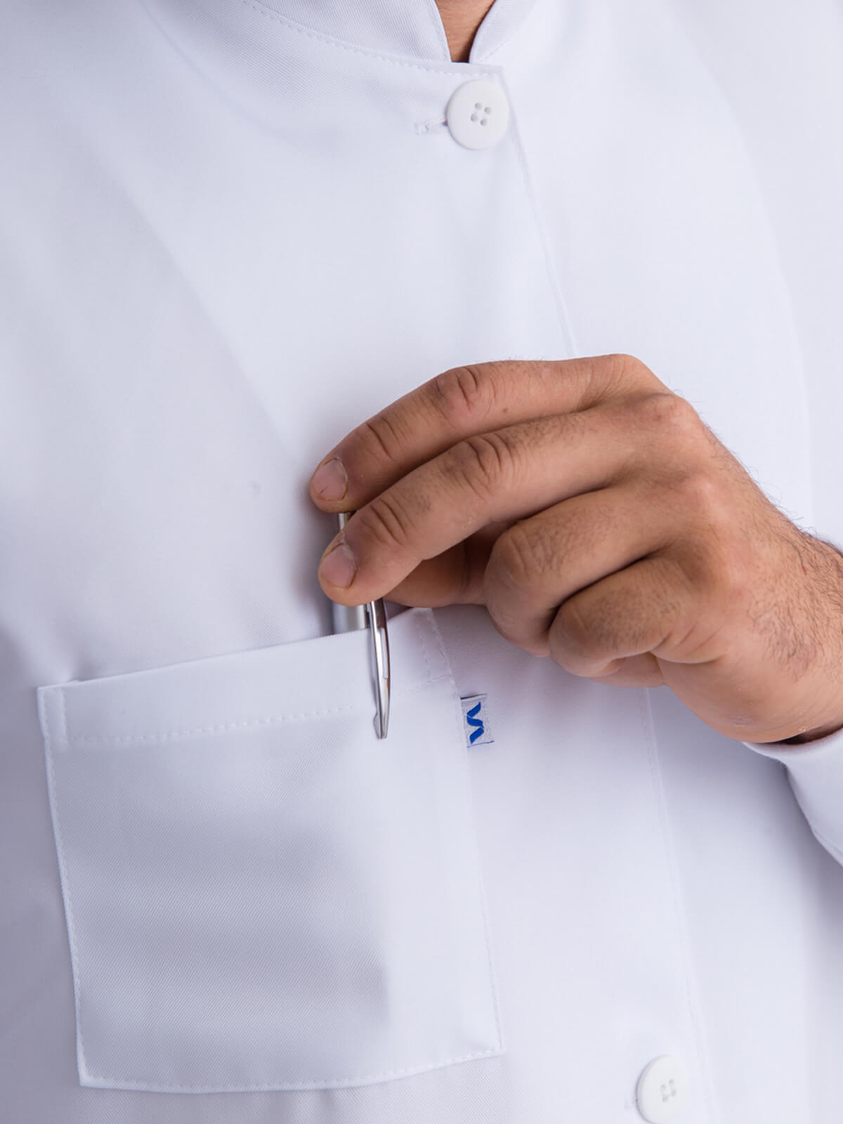Jaleco clássico para a área da odonto, laboratório ou outras profissões que necessitem de proteção contra agentes biológicos. Utilizado tanto por estudantes quanto profissionais já formados. Possui três bolsos localizados em lugares estratégicos. Gola modelo padre, dois bolsos na altura do quadril e um bolso no peito (lado esquerdo). Detalhe de cinto nas costas e punhos com malha (ribana).
